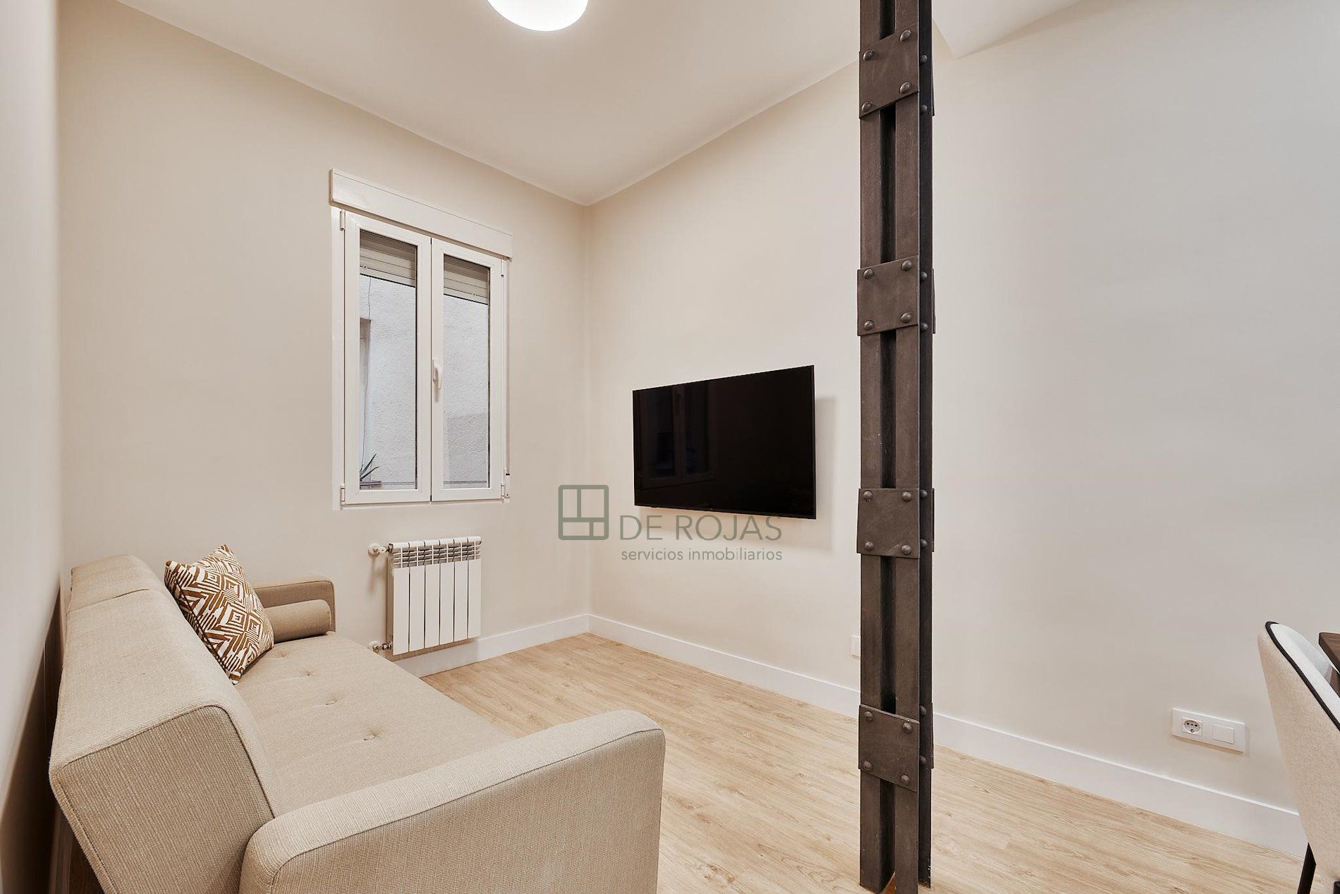 El piso cuenta con un baño completo, reformado con materiales de calidad que garantizan durabilidad y un diseño atractivo. La sala de estar, amueblada con gusto, es un lugar perfecto para relajarse y disfrutar de la tranquilidad que ofrece estar orientado hacia un tranquilo patio de manzana, eliminando el bullicio típico de la ciudad.