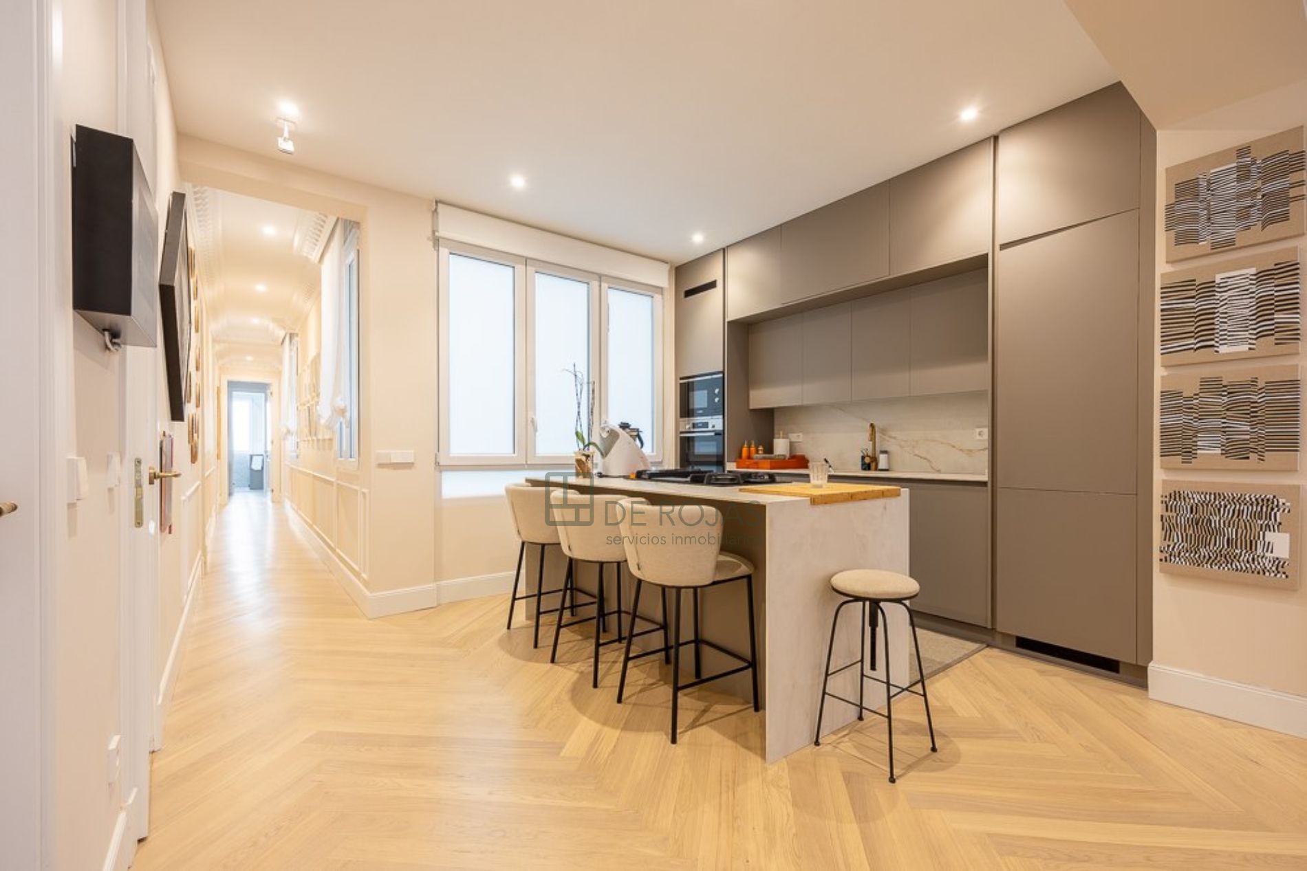 ¡Descubre el hogar de sus sueños en este espectacular piso reformado! Situado en la prestigiosa zona de Salamanca, en Madrid, este inmueble se encuentra en una cuarta planta de un emblemático edificio clásico, construido en 1944 y perfectamente rehabilitado. Con una superficie total de 233 metros cuadrados, este piso exterior no solo ofrece un espacio amplio, sino también un ambiente lleno de luz y confort. Al entrar, se encontrará con un gran salón-comedor que se presenta como el espacio ideal para disfrutar de momentos inolvidables junto a su familia y amigos. La zona de TV y el bar integrado añaden un toque de elegancia y funcionalidad, perfecto para sus reuniones. La cocina, abierta y completamente amueblada, está equipada con electrodomésticos de alta gama de la marca Bosch y una moderna encimera Silestone, además de contar con un amplio ventanal que ofrece vistas relajantes al patio interior ajardinado. Este excepcional piso dispone de cuatro dormitorios, todos ellos en suite, asegurando así privacidad y comodidad para cada uno de los miembros de la familia. Complementariamente, hay un aseo de invitados y un cuarto de lavandería que facilitan el día a día. No podemos dejar de mencionar la pequeña terraza orientada al oeste, el lugar perfecto para disfrutar de las maravillosas puestas de sol. El piso cuenta con acabados de alta calidad, incluyendo carpintería exterior de aluminio lacado, suelos de tarima, armarios empotrados y aire acondicionado por conductos. El edificio no solo es majestuoso con su portal de mármol y detalles en latón, sino que también ofrece comodidades como ascensor, trastero en el sótano y servicio de portero (automático y físico). Si busca unir historia con modernidad y desea vivir en una de las zonas más exclusivas de Madrid, este piso es una oportunidad única. ¡Visítelo y permítase enamorarse de su próximo hogar!